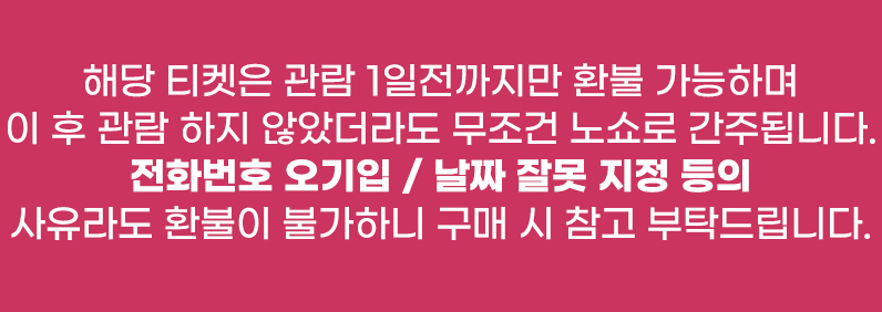 - 관람권 발권 및 부분 발권, 관람일 지난 티켓은 환불 불가
