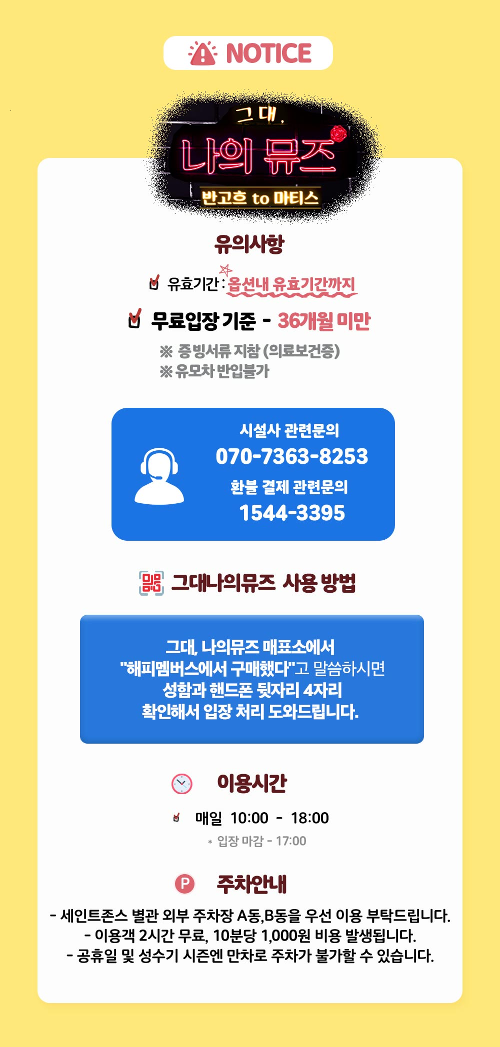 · 입장 및 발권 전 취소 : 결제금액 100% 환불