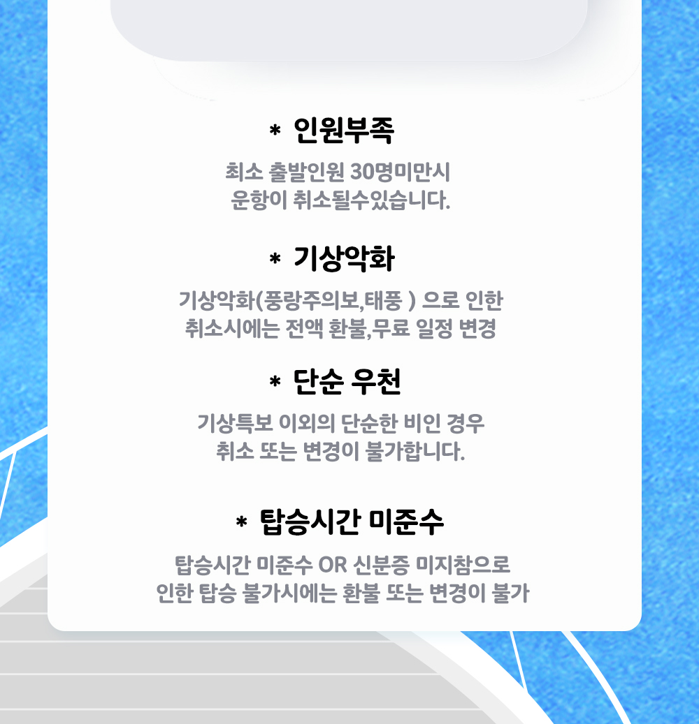 *최소 출발인원(정원 20%)미만 운항 취소 시 100% 전액 환불